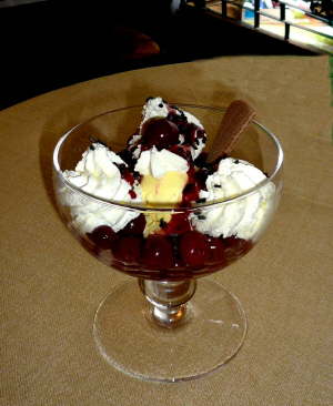 Vanilleeis mit Sauerkirschen, Kirschwasser und Sahne